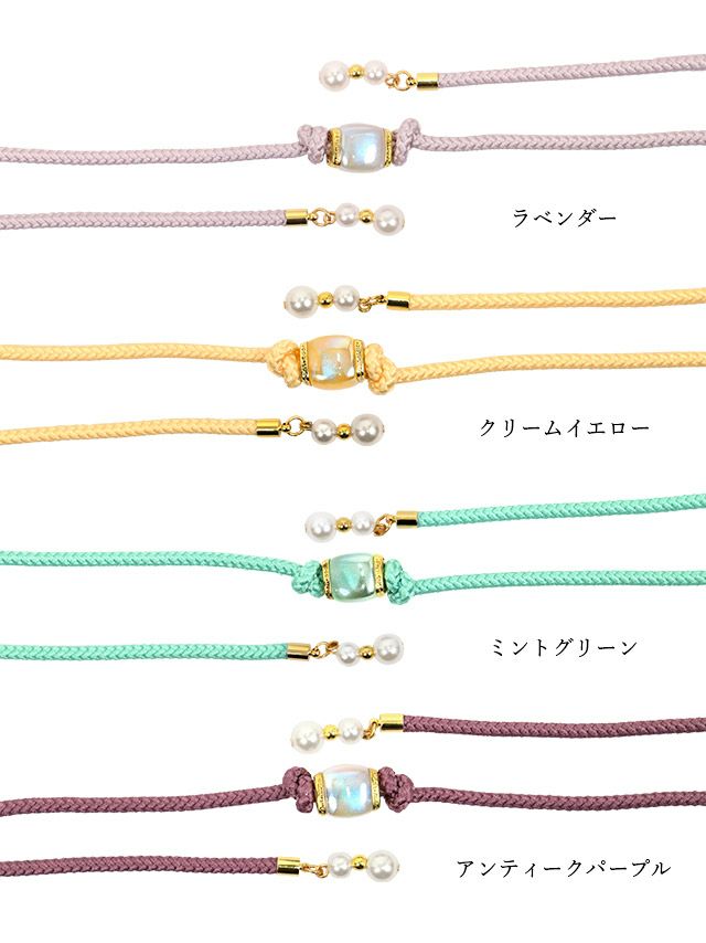 5. [浴衣小物] オーロラキューブ飾り帯紐 (ラベンダー/クリームイエロー/ミントグリーン/アンティークパープル)