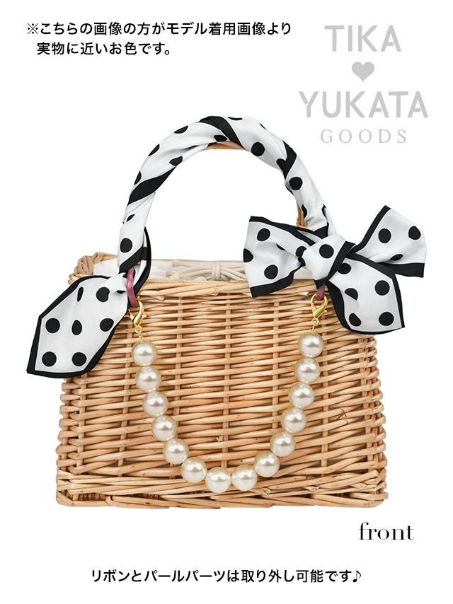 3. [浴衣小物] ドットスカーフ×パールチャーム付きスクエアミニかごバッグ