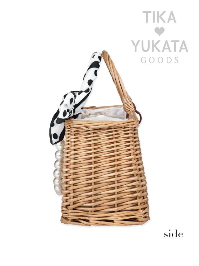 5. [浴衣小物] ドットスカーフ×パールチャーム付きスクエアミニかごバッグ