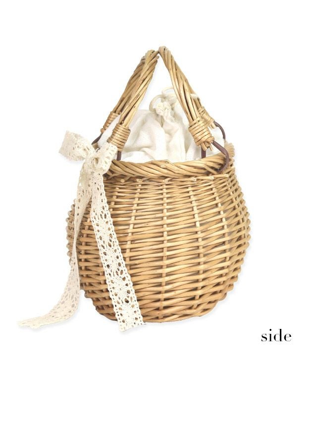 丸みのあるフォルムがとっても可愛い♪ [浴衣小物] レースリボン付き丸型ミニかごバッグ