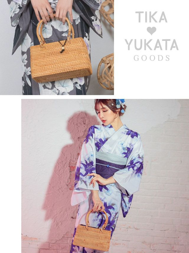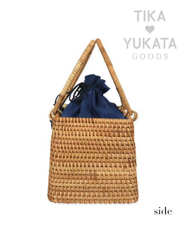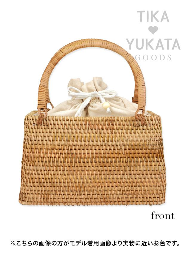 お気に入りの浴衣姿を一気に格上げ♪ [浴衣小物] 巾着付きナチュラルスクエアミニかごバッグ