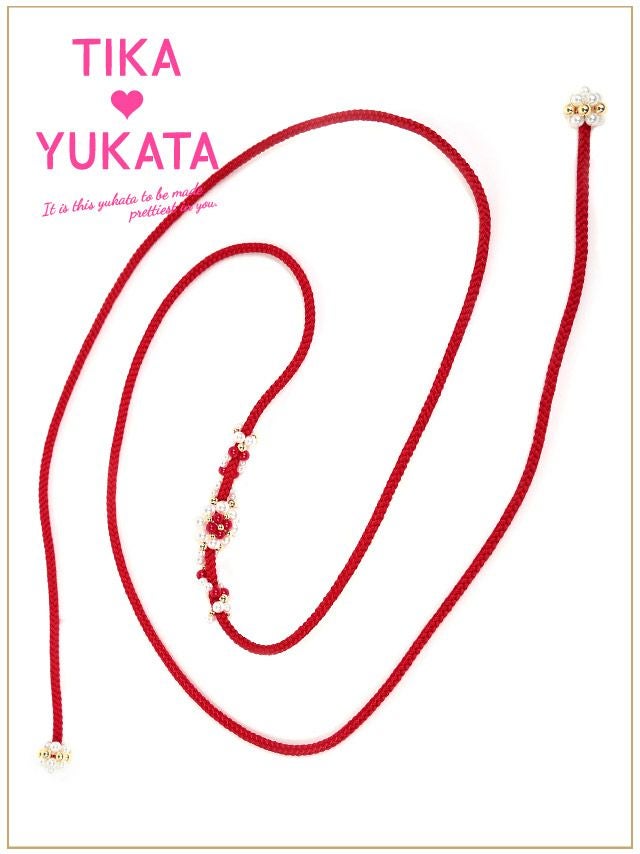 浴衣をもっと華やかに♪ [浴衣小物] 花形パールビース飾り帯紐 10色展開 (ホワイト/イエロー/イエローグリーン/ライトブルー/ブルー/パープル/レッド/ピンク/ライトピンク/シルバー)