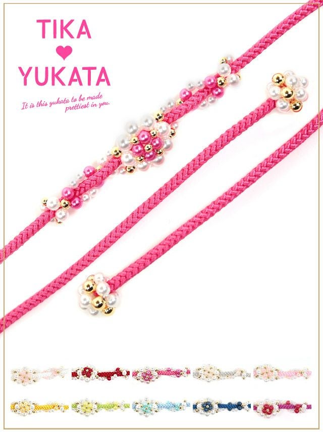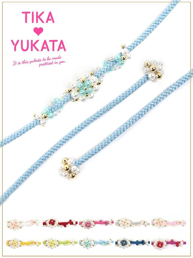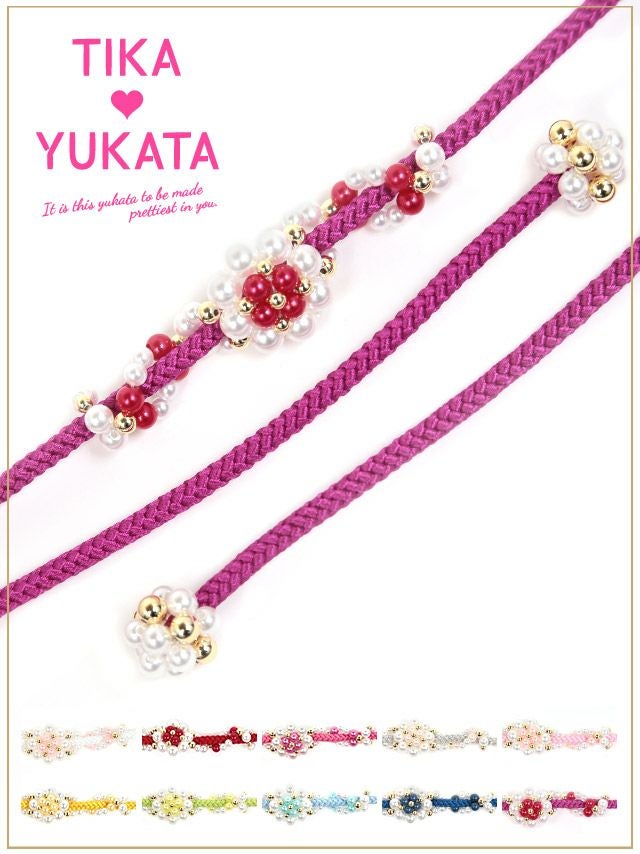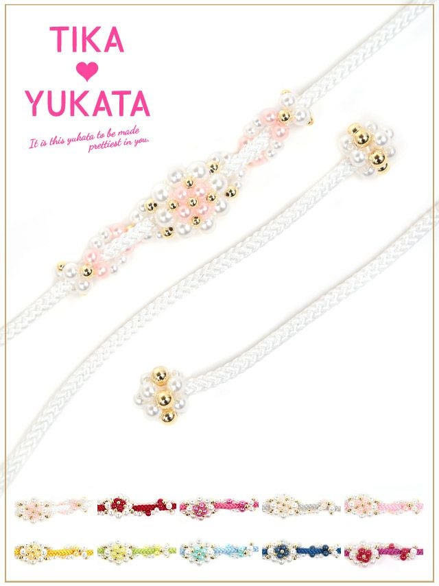 5. [浴衣小物] 花形パールビース飾り帯紐 10色展開 (ホワイト/イエロー/イエローグリーン/ライトブルー/ブルー/パープル/レッド/ピンク/ライトピンク/シルバー)