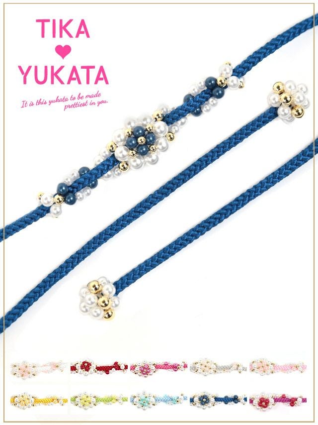 3. [浴衣小物] 花形パールビース飾り帯紐 10色展開 (ホワイト/イエロー/イエローグリーン/ライトブルー/ブルー/パープル/レッド/ピンク/ライトピンク/シルバー)