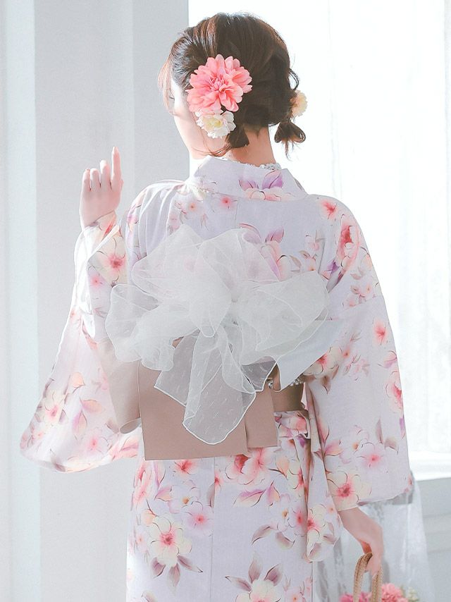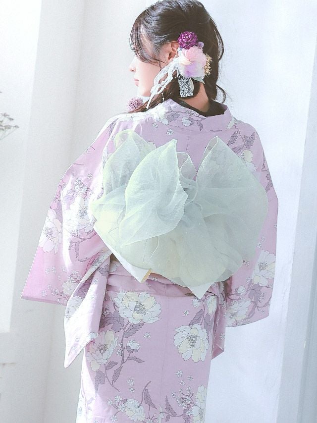 4. [浴衣小物] シアー ラメ 飾り兵児帯 (ホワイト/ベージュ/ラベンダー/パールグレー)