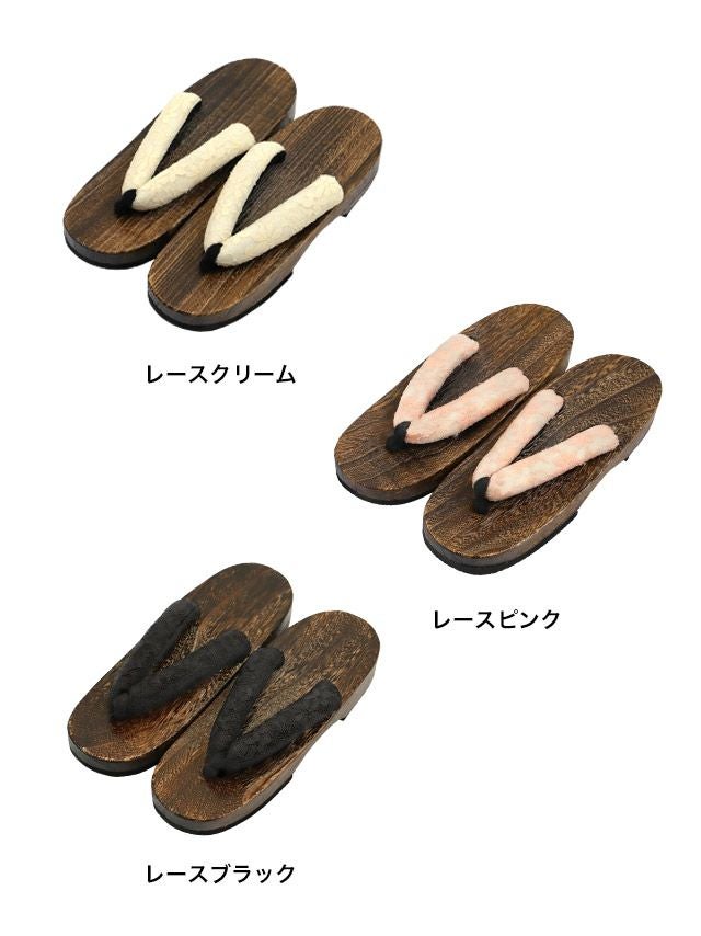 4. [浴衣小物] レース ベロア 焼き下駄 単品