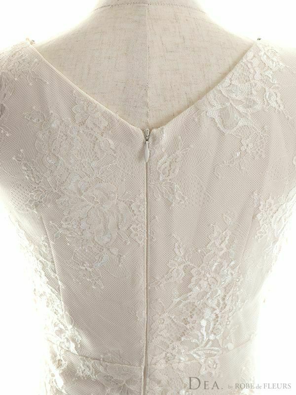 4. [DEA.byROBEdeFLEURS/ディアバイローブドフルール] 高級半袖レースビジューウエストベルト切り替え膝丈タイトドレス