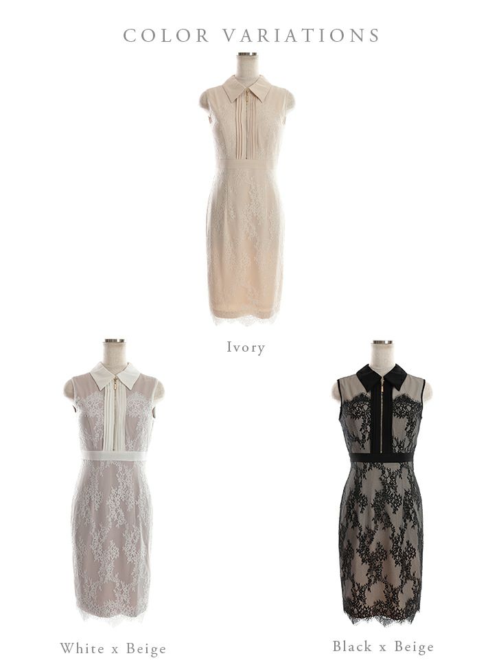 3. [DEA.byROBEdeFLEURS/ディアバイローブドフルール] 高級 フロントジップ 襟付き レース ノースリーブ ワンピース 膝丈ドレス