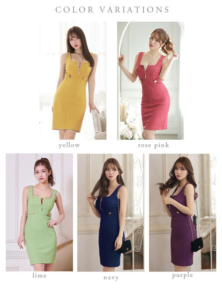 シンプルながらも女性らしさを演出☆ SALE [DEA.byROBEdeFLEURS/ディアバイローブドフルール] 高級バストジッパーデザインスーパーストレッチワッフルノースリーブ膝丈タイトドレス