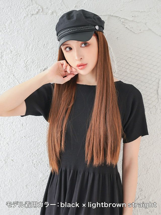 ブラック(帽子)×ライトブラウン(ウィッグ)