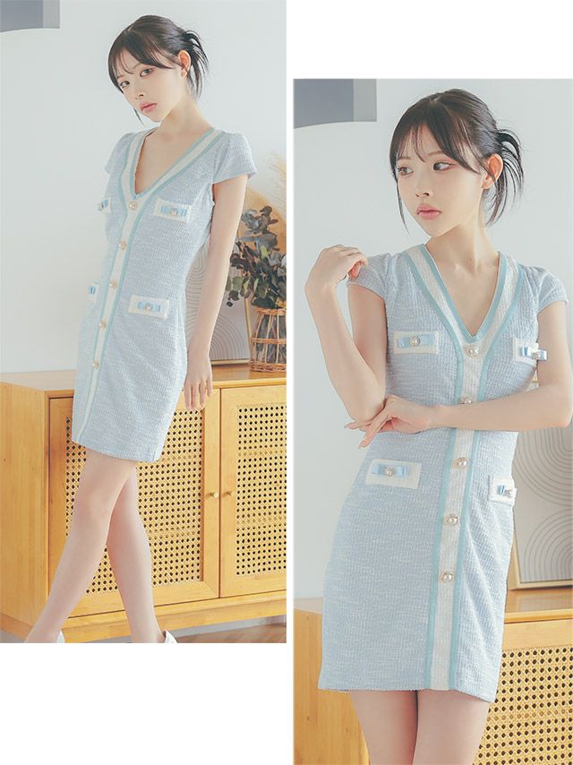 他の画像を見る 首周りスッキリ見え♪ [SALE] [韓国ドレス] ツイードバイカラーゴールドボタン半袖タイトミニドレス (Sサイズ~Lサイズ) (緩苺/キャバドレス着用) [TikaPimil] ¥ 13,200 ¥ 10,780 税込 お気に入りに追加