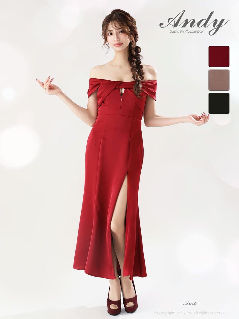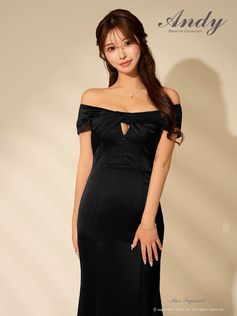 キャバドレス Andy アンディ 高級 オフショルダー Aラインロングドレス ジップ バストカット スリット