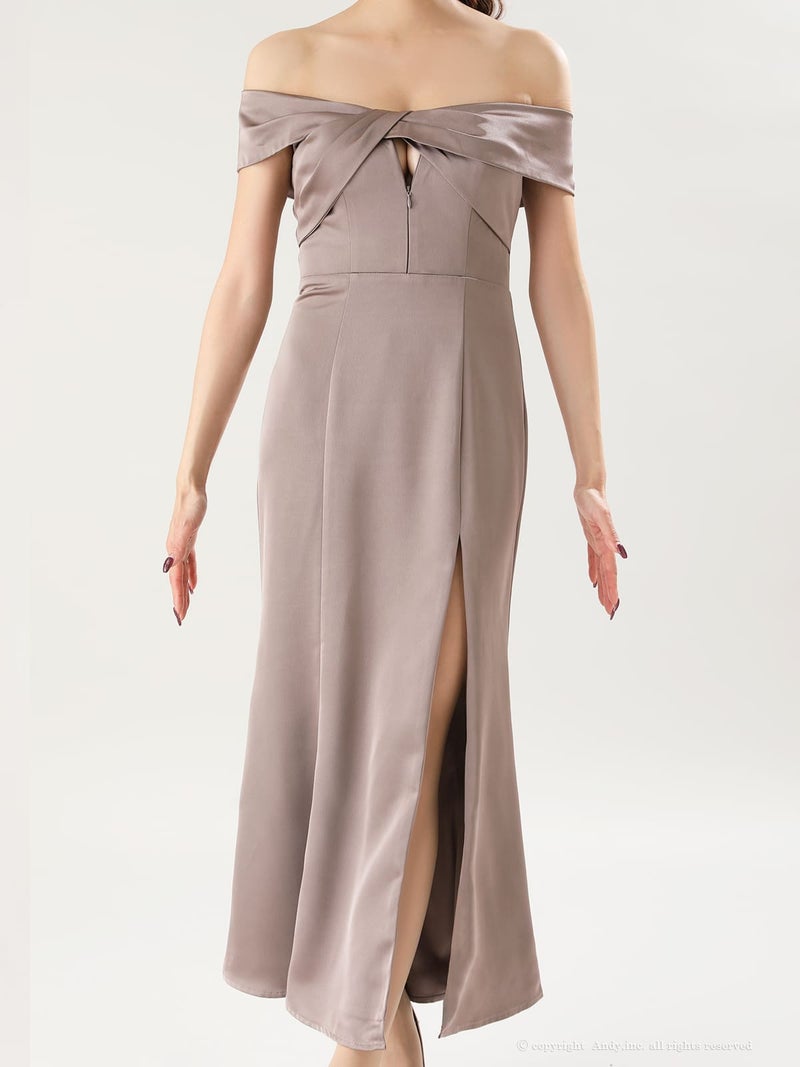 4. [Andy/アンディ] 高級 オフショルダー Aラインロングドレス ジップ バストカット スリット