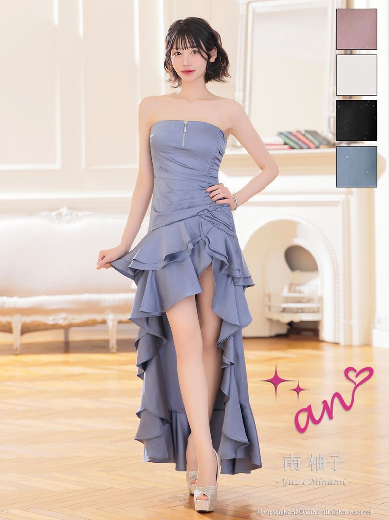 キャバドレス an アン 高級 ノースリーブ 膝丈ドレス ロングテールドレス バストカット ジップ フリル タック