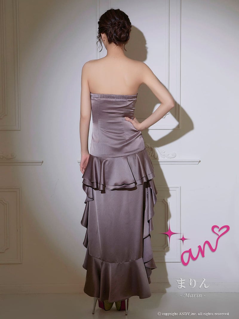 5. [an/アン] 高級 ノースリーブ ロングドレス ロングテール バストカット ジップ フリル タック