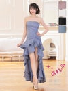 5. [an/アン] 高級 ノースリーブ ロングドレス ロングテール バストカット ジップ フリル タック