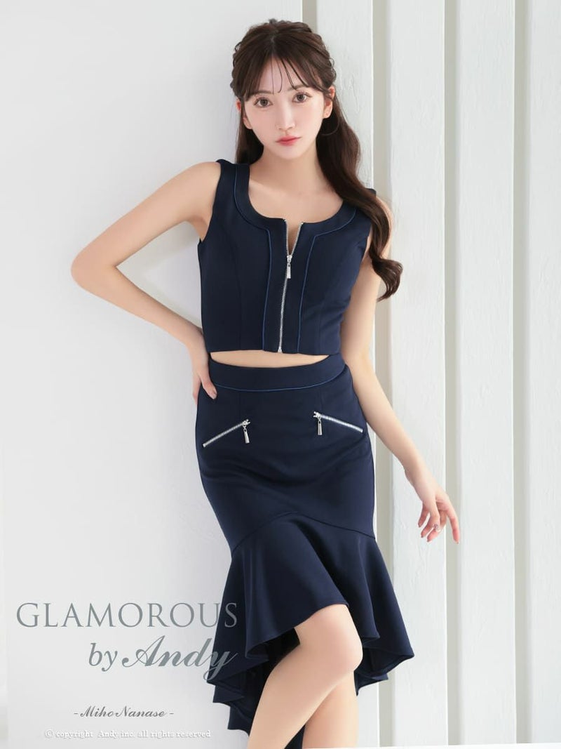 キャバドレス Andy アンディ  高級ノースリーブフロントジップセットアップマーメイド谷間魅せロングテールドレス