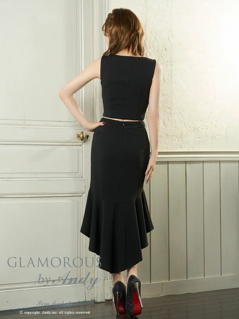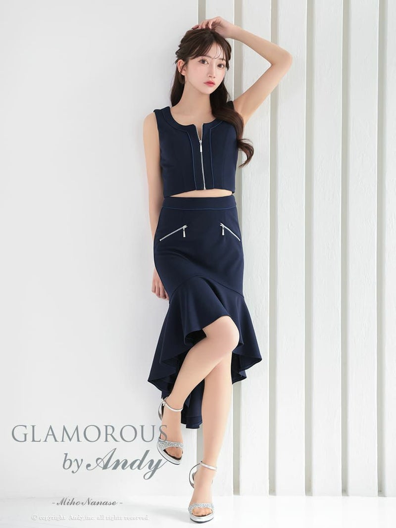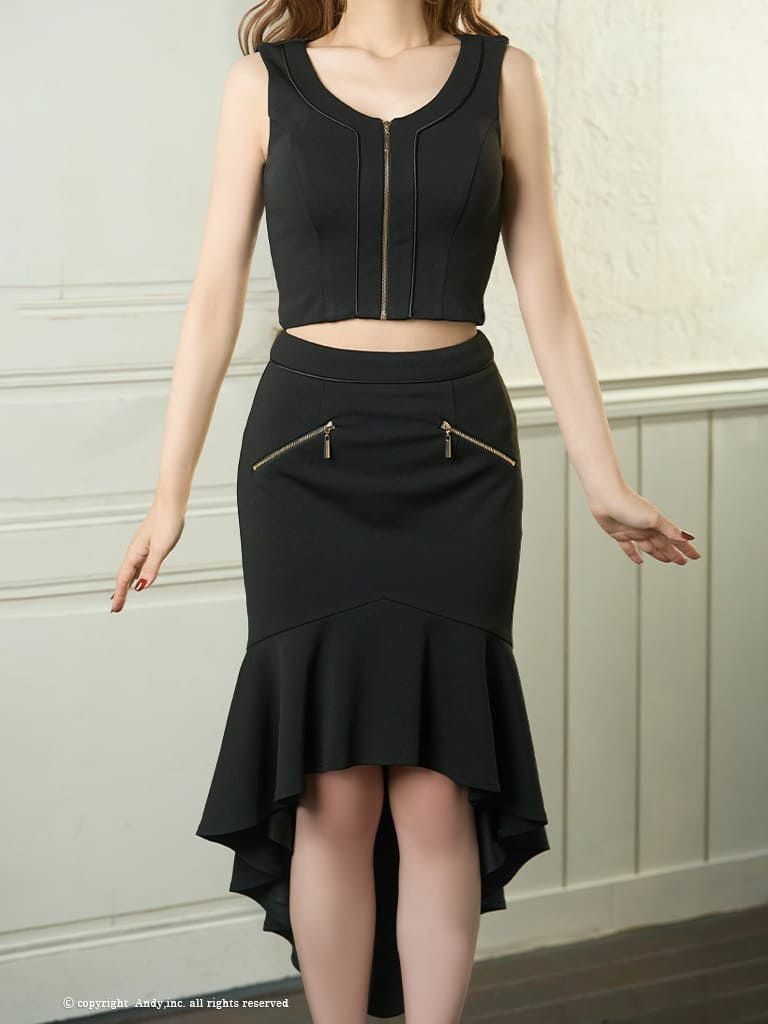 シンプルなデザインが大人っぽい★ [AndyGLAMOROUS/アンディグラマラス] 高級 ノースリーブ フロントジップ セットアップ マーメイド 谷間魅せ ロングテールドレス