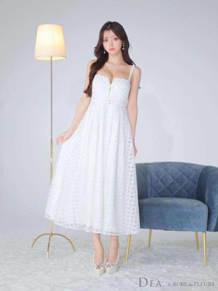 シンプルながら華やかな一着☆ SALE [DEA.byROBEdeFLEURS/ディアバイローブドフルール] 高級 フロントジップ チェック柄 チュール ワンピース キャミソール Aラインロングドレス