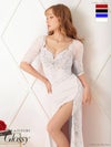 4. SALE [ROBEdeFLEURSGlossy/ローブドフルールグロッシー] 高級バストクロスビジューサイドジッパーレース袖ありタイトロングドレス