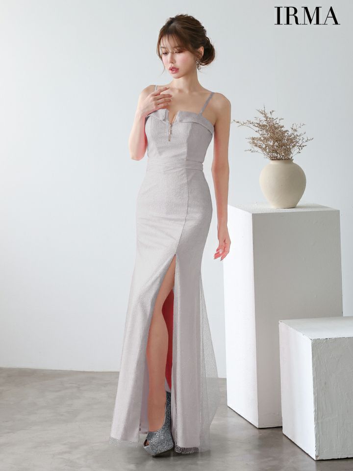 エレガントな美シルエットをメイク♡ [IRMA/イルマ] 高級 ワンカラー キャミソール バストジップ スリット タイトロングドレス