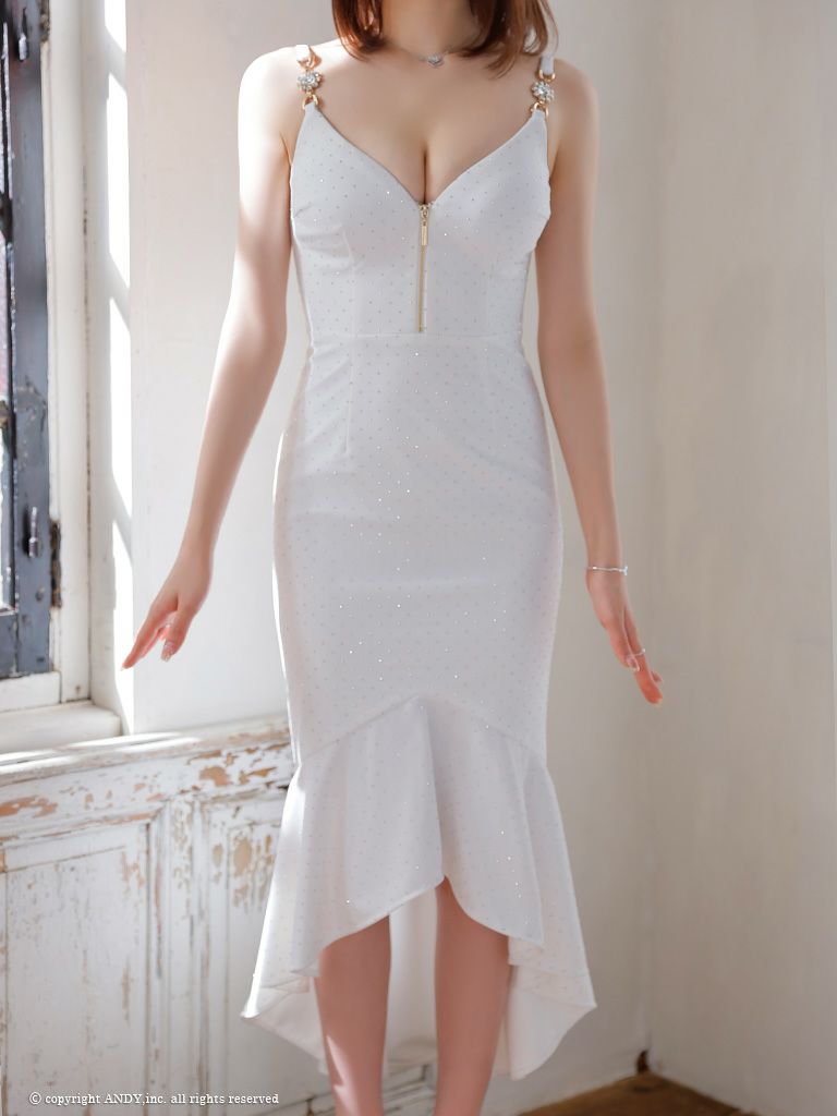 他の画像を見る バストジップでセクシーに☆ [AndyGLAMOROUS/アンディグラマラス] 高級ビジュー マーメイドフリル ジップ キャミソール ロングテールドレス ¥ 27,500 税込 在庫切れ お気に入りに追加