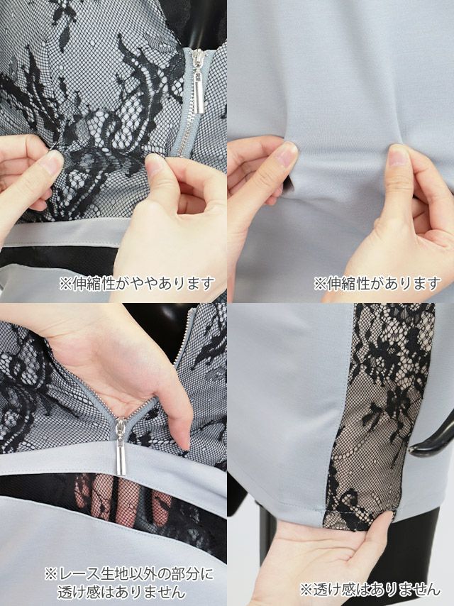 肩あきフロントジップブラックレース切替タイトミニドレスのイメージ画像4