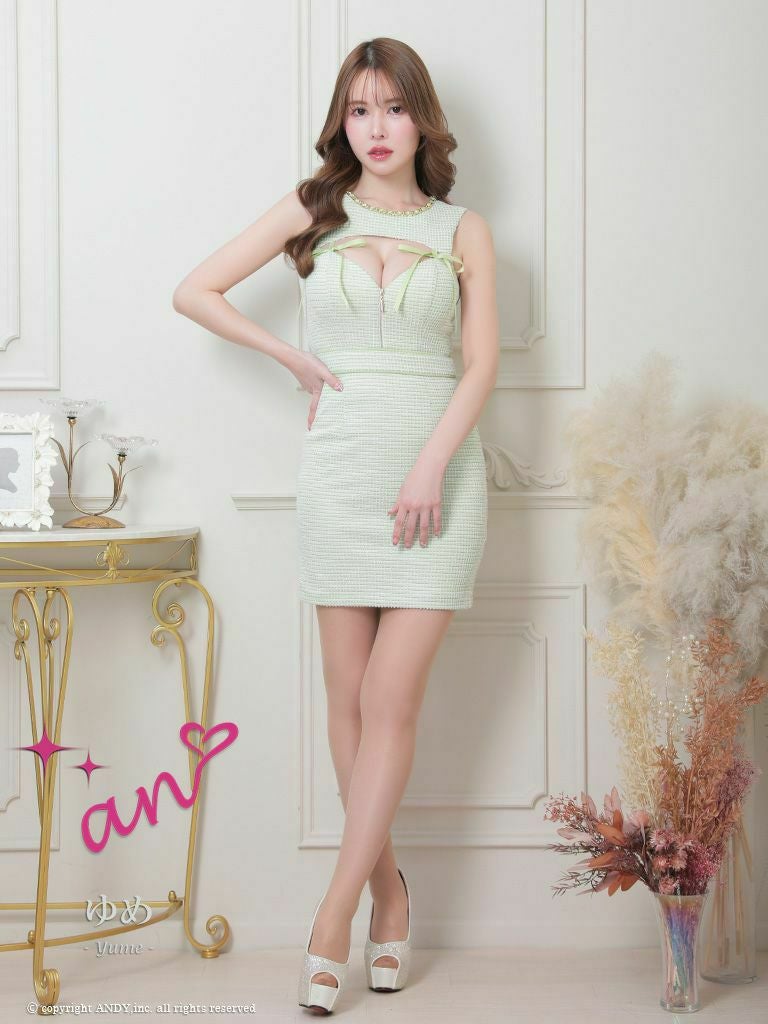 sexy&girlyな欲張りドレス☆ [an/アン] 高級 ノースリーブ バストカット ジップ リボン ツイード 谷間魅せ タイトミニドレス