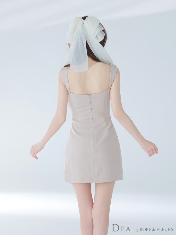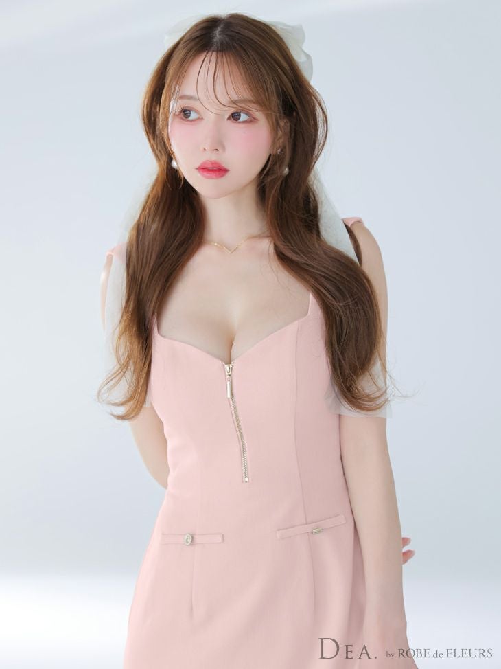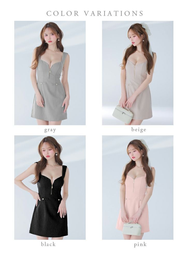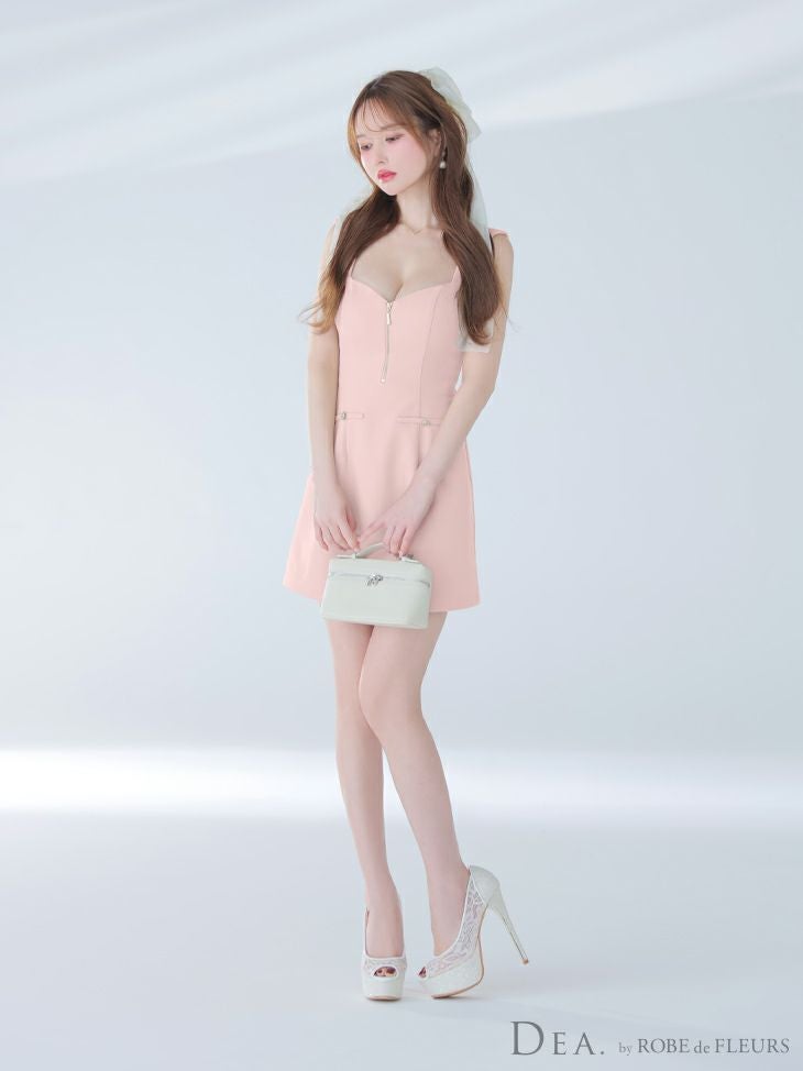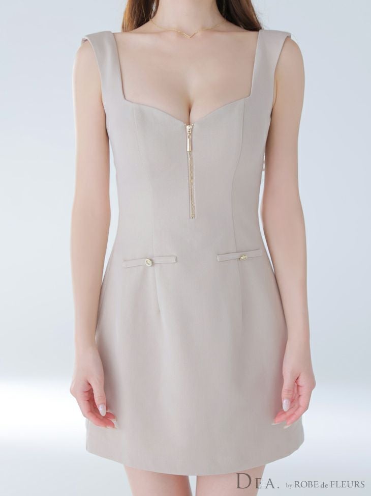 シンプルで魅せる♡ [DEA.byROBEdeFLEURS/ディアバイローブドフルール] 高級 シンプル ノースリーブ フロントジップ ワンカラー フレアミニドレス
