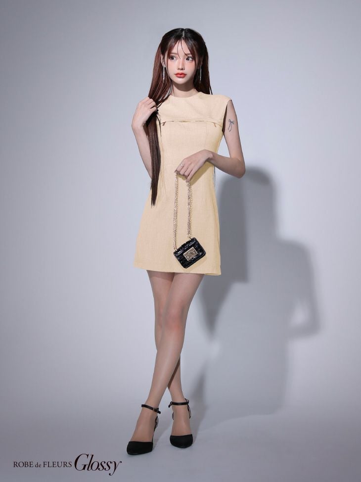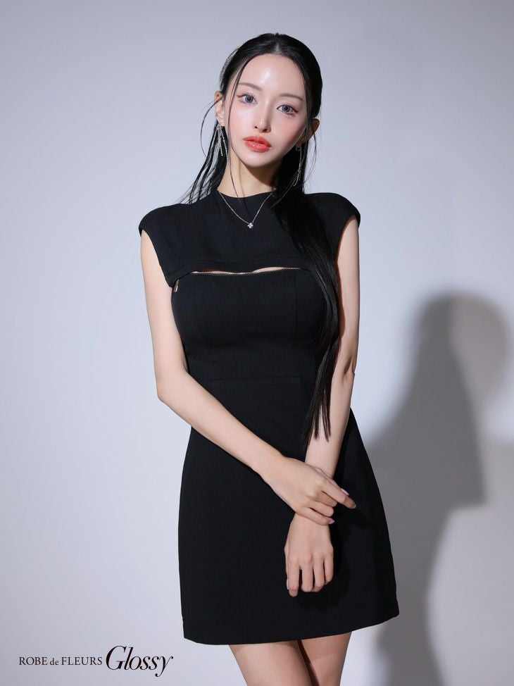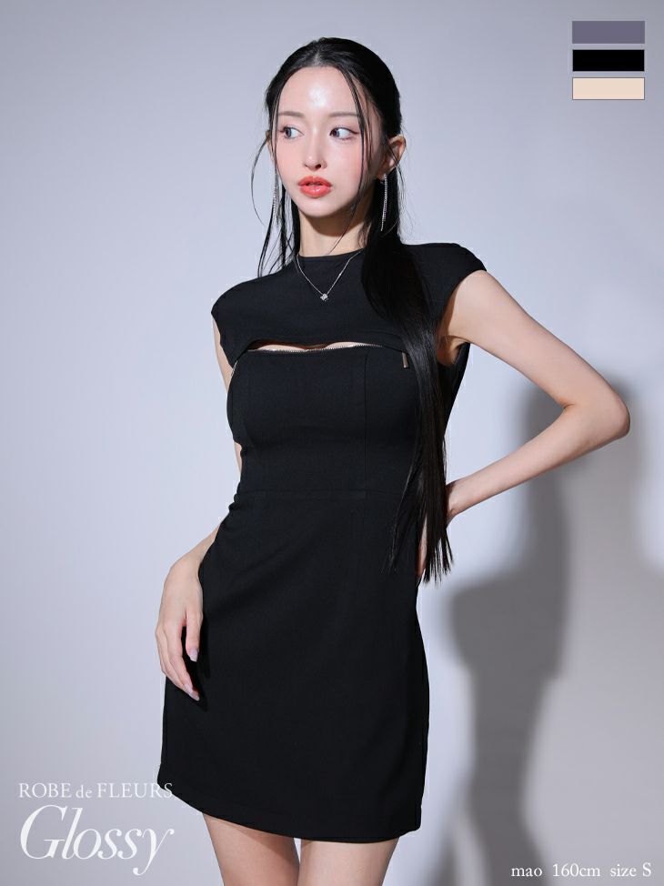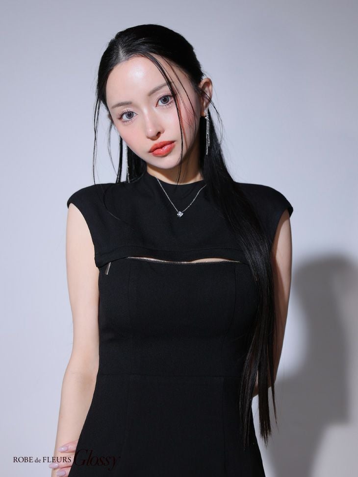 4. [ROBEdeFLEURSGlossy/ローブドフルールグロッシー] 高級ワンカラーバックオープンバストジップノースリーブタイトミニドレス
