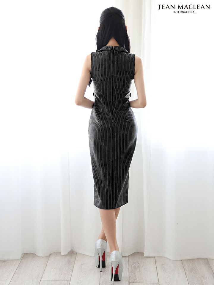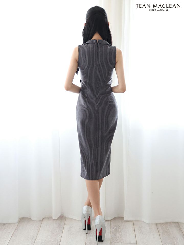 4. [JEANMACLEAN/ジャンマクレーン] 高級 襟付き ストライプ ジップ ノースリーブ 膝丈ドレス