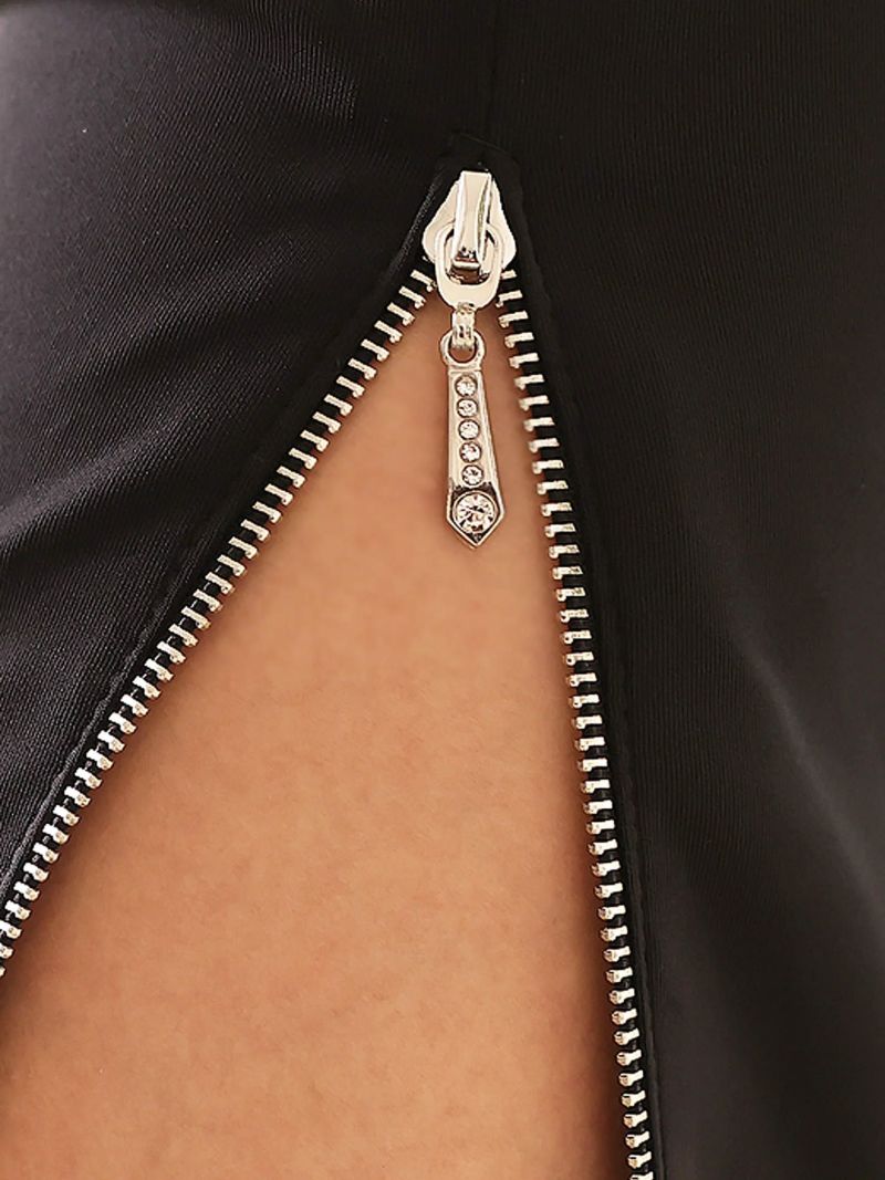 4. ジップデザイン高級ミニドレス