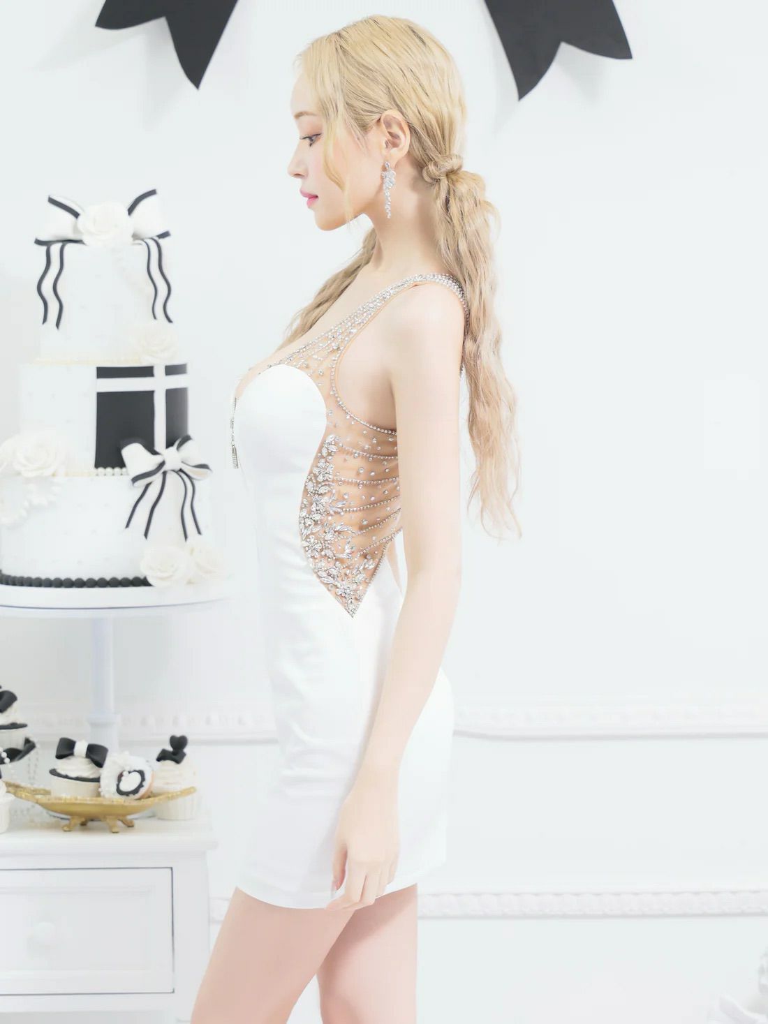 他の画像を見る ビジューが煌めき高級感高まる☆ [ROBEdeFLEURSGlossy/ローブドフルールグロッシー] 高級 ブランド タイトミニドレス 谷間 ホルターネック ジップ ビジュー バストカット ¥ 27,280 税込 お気に入りに追加