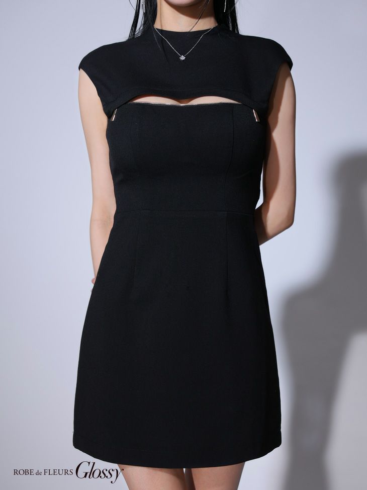 他の画像を見る お顔周りをスッキリ見せる☆ [ROBEdeFLEURSGlossy/ローブドフルールグロッシー] 高級 ノースリーブ 襟付き バストカット ジップ 谷間魅せ タイトミニドレス ¥ 27,280 税込 お気に入りに追加