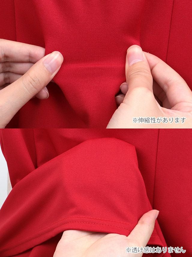 5. 安い タイトミニドレス 谷間 シンプル 大人 上品 ストレッチ 半袖 ジップ パフスリーブ ブラジャーのまま プチプラ (ちぴたん れいたぴ着用)
